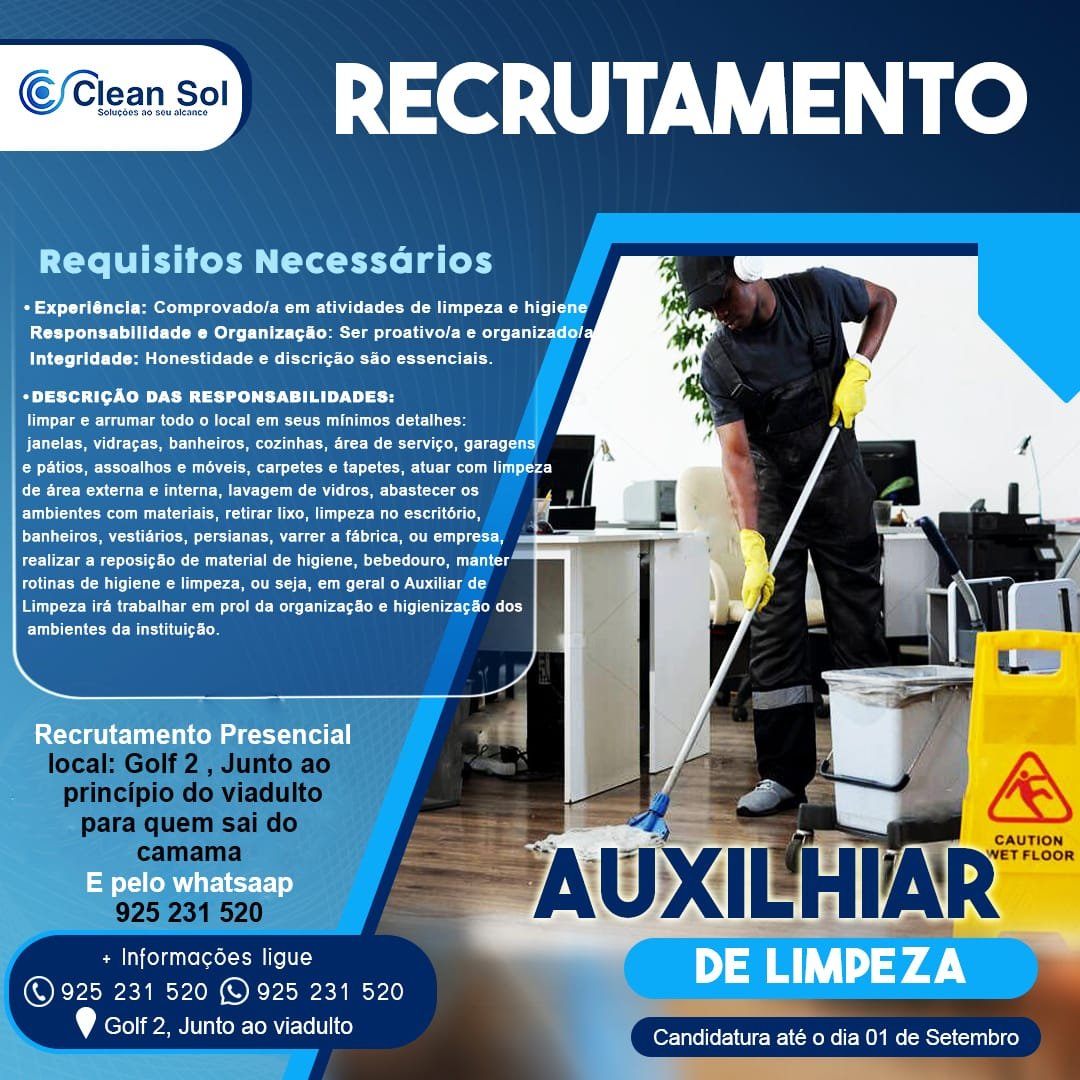 • Experiência: Comprovado/a em atividades de limpeza e higiene